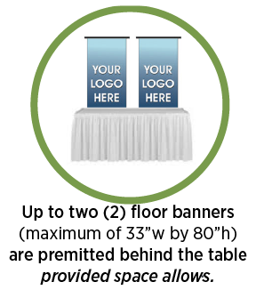 This is a tabletop exhibit and all display materials must be placed on surface of the table. Pop-up tabletop displays may be used, however, pop-up floor displays designed for a standard 10 foot booth or any other floor display may not be used. No additional equipment or displays may be placed in surrounding area. There will not be room for freestanding banners next to your table but may be placed directly behind your table.